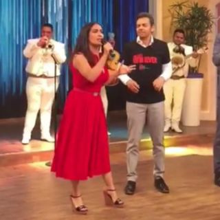 En el clip se puede ver cómo Salma interpretó parte del tema “Amanecí en tus brazos”, acompañada por un mariachi y alentada por Derbez.