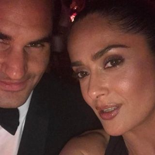 Salma Hayek comparte foto con Roger Federer