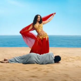 Vestida como bailarina árabe, Salma aparece en el video -de apenas 14 segundos- realizando sensuales movimientos acompañada por su velo.