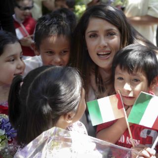 Salma Hayek visita guardería del IMSS