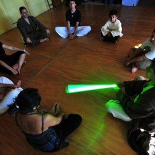 "La agresión es parte del lado oscuro. Si van a pegarle a alguien, están agrediendo, entonces la Fuerza debe ser usada sólo desde el lado claro, ya que es sólo para defenderse", explica por su parte Sergio Angeloni o 'maestro yodai', un profesor de lenguaje de 44 años, a un grupo de seis alumnos que lo escuchan con atención.