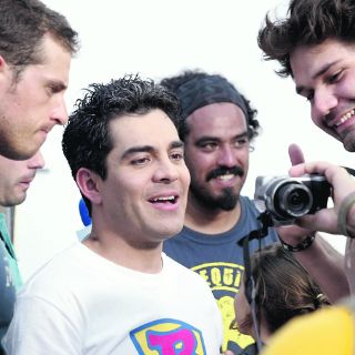 GUADALAJARA, JALISCO (13/AGO/2010).- El exterior del Teatro Degollado se convirtió ayer por la tarde en el set donde el actor Omar Chaparro grabó un comercial, donde decenas de curiosos trataban de acercarse a la locación que fue acordonada y custodiada por miembros de la producción.