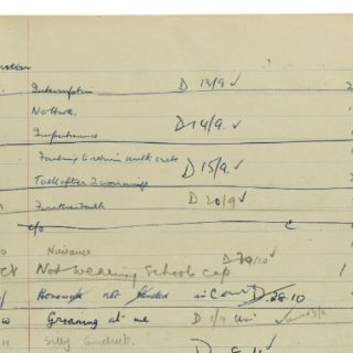 Lennon, que entonces tenía 15 años, fue castigado durante ese periodo por seis profesores distintos, lo que revela que sus desacatos a la autoridad eran frecuentes en el instituto.