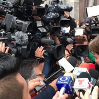 Con pancartas y con consignas en contra de Gil, las mujeres, que llegaron a la par de la actriz, vestían playeras blanca con el rostro de Marjorie; no quisieron identificarse y luego argumentaron que formaban parte de una asociación en defensa de la mujer sin dar mayor información.