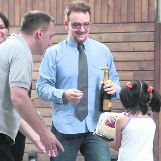 Desde su llegada a esta ciudad, Bono se ha mostrado cálido con sus fans quienes han hecho guardia en las afueras del hotel donde se hospeda.