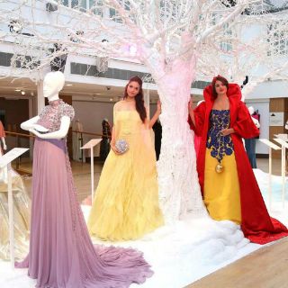 Los diez diseños de alta costura inspirados en los cuentos de princesas permanecieron expuestos desde el 9 de noviembre en una sala decorada por los conocidos grandes almacenes británicos Harrods.