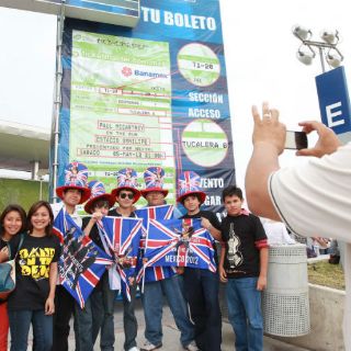 18:40 horas. El corazón del púbico se acelera. El evento está por arrancar y muchos buscan ocupar sus asientos. Algunos valientes adquirieron mercancía. Valientes porque no estaban nada baratas las camisas conmemorativas del evento, arriba de 200 pesos. Muchos optaron por llevar la ropa que ya tenían. "Pauls" de todas las edades y colores estaban presentes en la ropa de los fanáticos.