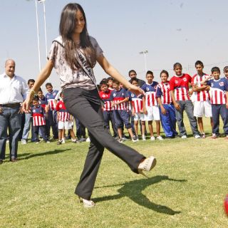Fue minutos después de las 10:30 horas, y cuando ondeaban una bandera de México, una de la Unión Americana y una más de la Fundación Childrens International, cuando se escuchó el himno nacional a manera de apertura del evento, en el que Ximena tuvo un acercamiento con decenas de niños, develó una placa en conmemoración de su visita, plasmó sus huellas e inauguró una cancha de futbol.