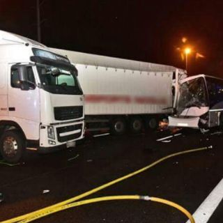 Las primeras imágenes del lugar del accidente permitían ver un autobús seriamente dañado y la caja del camión reventada por la parte trasera.