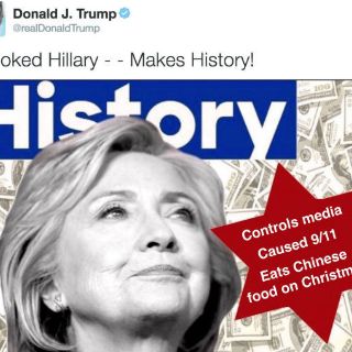 “La candidata más corrupta de la historia”, señalaba una imagen con una foto de la ex primera dama y un fondo de billetes de 100 dólares, publicada por el magnate en su cuenta oficial de Twitter. El texto estaba sobre una estrella roja de seis puntas, parecida a la estrella de David, asociada comúnmente con el judaísmo.