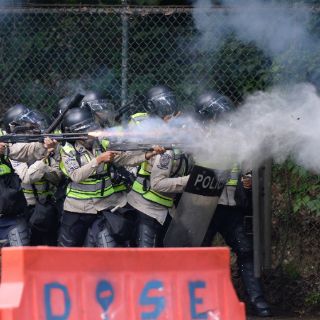 Los policías y guardias nacionales lanzaron gases lacrimógenos para tratar de dispersar a los manifestantes que al grito de "Resistencia" se enfrentaron por más de una hora con los cuerpos de seguridad.