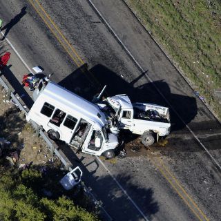Las fotografías y vídeos de la escena muestran un fuerte impacto en las partes delanteras del lado del conductor del pequeño autobús blanco y de la camioneta tipo pickup.