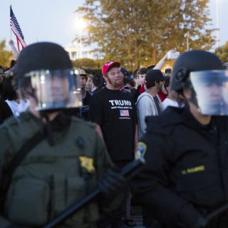 Afuera la tensión se incremento con la presencia de seguidores y opositores que invadieron calles, lo que generó un bloque de seguridad establecida por agentes del Departamento de Policía de Costa Mesa.