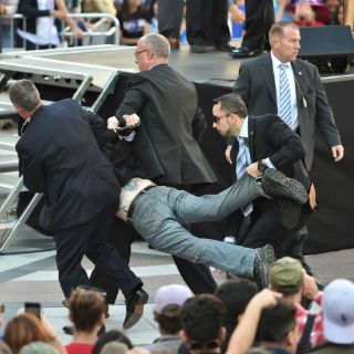CALIFORNIA, ESTADOS UNIDOS (30/MAY/2016).- Al menos cuatro personas fueron arrestadas, tras saltar las barreras colocadas para un evento que encabezaba el senador y aspirante presidencial