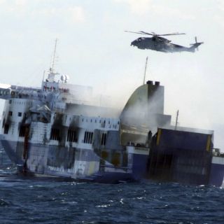 "Rescatar a 427 personas de una nave en llamas, la mayor parte con helicópteros mientras se registraban vientos a 40 nudos, fue una empresa histórica", consideró por su parte el almirante Giuseppe De Giorgi, jefe del Estado Mayor de la Marina Militar italiana.