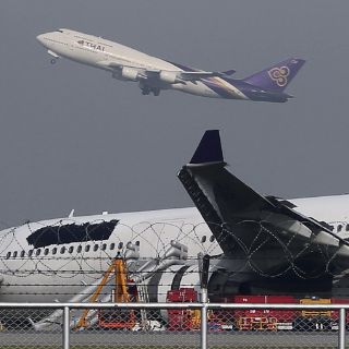 "Tras aterrizar en el aeropuerto de Suvarnabhumi falló el tren de aterrizaje e hizo que el aparato se saliera de la pista", dijo el presidente de Thai Airways, Sorajak Kasemsuvan, en una declaración. "Se notaron chispas en la vecindad de la parte derecha del tren de aterrizaje cerca del motor; el asunto es investigado".