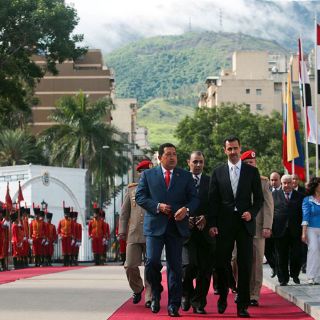 CARACAS, VENEZUELA (27/JUN/2010).- El presidente venezolano Hugo Chávez recibió a su homólogo sirio, Bashar Assad, en su primera visita a Venezuela y llamó a América Latina y al mundo árabe a luchar contra lo que llamó los intereses imperialistas y capitalistas de Estados Unidos en el mundo.