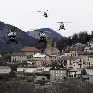 Varios helicópteros sobrevolaban desde el amanecer los escombros dispersos por la ladera, unas horas antes de la llegada prevista de las afectadas familias y los mandatarios de Francia, España y Alemania. El vuelo, que realizaba una ruta de Barcelona a Duesseldorf, cayó por motivos desconocidos durante ocho minutos antes de estrellarse el martes por la mañana.