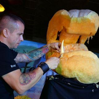 Sin embargo, hubo pocas frutas pequeñas en este acto. Una de las calabazas que Villafane y los otros esculpieron fue una de 678 kilos cosechada en Edinburg, Pensilvania. Se le dio forma de "criatura carnívora", con una serie de dientes temibles.