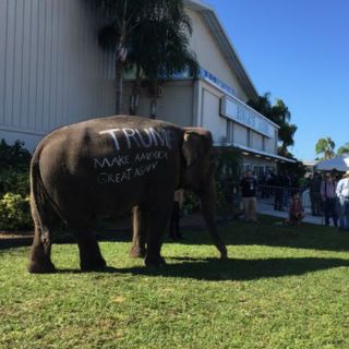 El paquidermo, símbolo del Partido Republicano, tenía escrito un mensaje en su lomo
