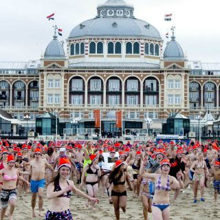El tradicional chapuzón de Año Nuevo se ha reproducido en otros lugares de Holanda, aunque el más emblemático es el que se celebra en la playa de La Haya.