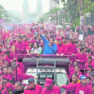 A pesar de la copiosa lluvia que caía sobre Caracas, cientos de miles de seguidores de Chávez llenaron varias avenidas del Centro de la ciudad y permanecieron en el lugar para escuchar al presidente, que busca la reelección para encadenar 20 años en el poder.