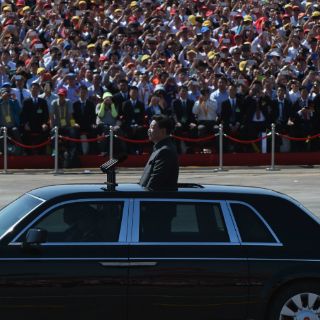 Xi realizó su intervención en lo alto de la puerta de Tiananmen, ubicada en el corazón de la capital china, acompañado de sus antecesores en el cargo Jiang Zemin y Hu Jintao, así como figuras internacionales como los presidentes ruso, Vladímir Putin, y venezolano, Nicolás Maduro, o el secretario general de la ONU, Ban Ki-moon.