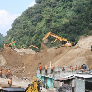Los trabajos de búsqueda y rescate se han complicado porque el lodo continúa deslizándose por la ladera de la montaña ante la presencia de lluvias en el área.
