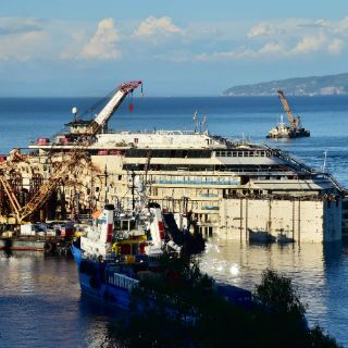 Cuadrillas especializadas colocaron enormes tanques en los flancos de la nave, como si fueran salvavidas, para levantarla de la plataforma submarina y remolcarla hacia Génova, en territorio continental, a fin de desguazarla.