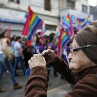 "Estoy aquí por mis derechos. Quiero casarme y tener hijos con la mujer que amo", declaró Delia Ferreira, que participó en la marcha acompañada de su pareja.