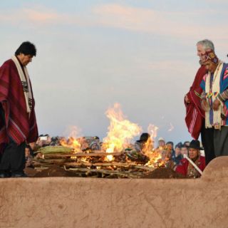 El mandatario recibió los primeros rayos del sol en Tiahuanaco o Tiwanaku, a 71 km de La Paz, con las manos extendidas, en una ceremonia tradicional en la que se encendió una enorme pira y se hicieron sahumerios, en señal de buen augurio.