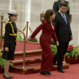 Cristina Fernández, abandonó la silla de ruedas y desfiló hoy con una bota ortopédica junto a su homólogo chino, Xi Jinping, en la ceremonia de bienvenida en el Gran Palacio del Pueblo de Beijing.