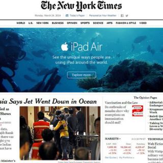 GUADALAJARA, JALISCO (24/MAR/2014).- El prestigioso periódico digital The New York Times ha sido fuertemente criticado por usuarios de las redes sociales por la publicidad que portaba al momento de dar la noticia del