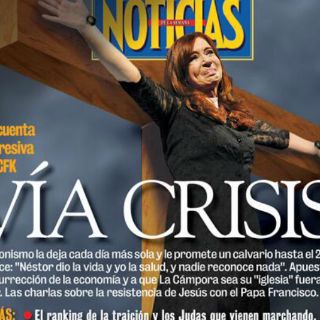 Cristina Fernández crucificada bajo el titular "Via Crisis", informó hoy la agencia oficial Télam.
