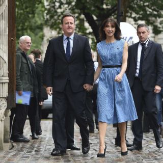 El jefe del Gobierno y líder del Partido Conservador acudió a la votación vestido con traje y corbata oscuros, mientras que su esposa llevaba un vestido azul sin mangas ajustado con un cinturón negro.