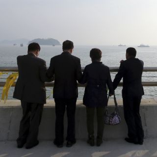 SEÚL, COREA DEL SUR (12/MAY/2014).- Tres miembros de la tripulación del transbordador que se hundió hace casi un mes en aguas de