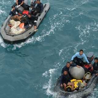 "Un barco detectó los sonidos. Los buceadores intentan recuperar" las cajas negras, declaró un responsable de operaciones en el mar de Java, S.B Supriyadi.