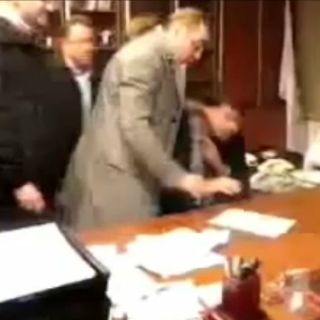 "¡Siéntate y escribe tu renuncia!", ordenan los sujetos luego de una discusión en la que el director trató de defenderse, pero finalmente terminó abandonando el cargo bajo presión, según indicó Euronews a través de su sitio web.
