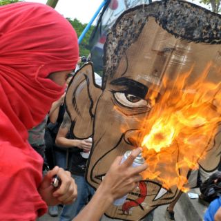 Los jóvenes -al parecer miembros de un grupo denominado Los Anarcos-, vestidos de negro y con los rostros cubiertos con pañuelos o máscaras, corearon consignas antiestadounidenses, quemaron una imagen del presidente de Estados Unidos, Barack Obama, y una bandera de ese país.