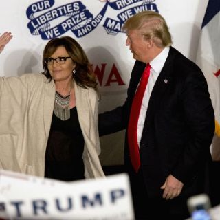 Fue presentado en el acto de campaña por su más célebre partidaria: la ex aspirante a la vicepresidencia y estrella conservadora Sarah Palin.
