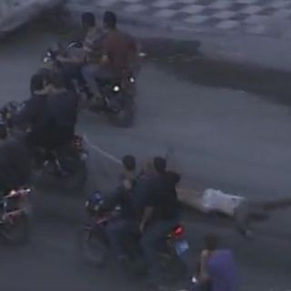 Periodistas vieron a un hombre con camiseta y descalzo atado al parachoques trasero de un coche y arrastrado por un barrio del norte de Gaza, al son de las bocinas.