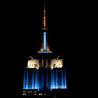 NUEVA YORK, ESTADOS UNIDOS (10/JUL/2014).- El festejo de Argentina trascendió fronteras. Un ejemplo claro lo puso el Empire State que se iluminó la noche de ayer miércoles con los colores azul y blanco por el triunfo de Argentina ayer sobre Holanda.