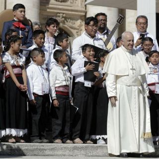 Ante miles de personas congregadas en la Plaza de San Pedro para asistir a su catequesis semanal, Francisco pudo escuchar a los integrantes del coro de pequeños indígenas "Voces Yumhu", quienes le dedicaron el Cielito Lindo en lengua otomí.