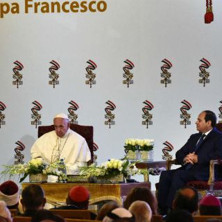 En un acto al que asistieron además miembros del Gobierno y del Parlamento egipcios y representantes del cuerpo diplomático Francisco advirtió, además, de que "la historia no perdona a los que proclaman la justicia y practican la injusticia".