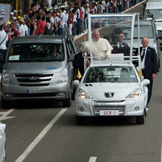 A bordo del "papa-móvil", el Papa realizó un recorrido entre la multitud congregada en el lugar, antes de la ceremonia religiosa que comenzará a las nueve de la mañana hora local (13:00 GMT).