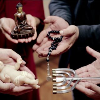 El video concluye con la imagen de los objetos de veneración de las diferentes religiones, como la "menorá" judía, el rosario cristiano o el "tasbih" o rosario musulmán.