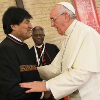 Mientras el Pontífice pronunciaba estas palabras, en primera fila se encontraba el presidente de Bolivia, Evo Morales, quien participó como representante de grupos indígenas en el Encuentro Mundial de Movimientos Populares, que comenzó la víspera y concluirá el miércoles.