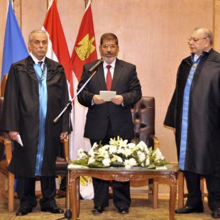 "Acepto esta responsabilidad para hacerme cargo de ellas (las Fuerzas Armadas), así como de todo el pueblo egipcio", dijo Mursi, quien fue saludado con veintiún salvas de artillería.