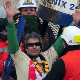 SANTIAGO, CHILE (13/OCT/2010).- Mario Gómez Heredia, el minero más veterano y enfermo de los 33 atrapados desde el pasado 5 de agosto en la mina San José, fue rescatado hoy sin contratiempos tras permanecer 70 días a 622 metros de profundidad.