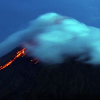 Antes de la madrugada del miércoles, una cascada de lava roja descendía desde el cráter de este volcán, famoso en Filipinas por la casi perfección de su cono, hasta la mitad de la ladera.